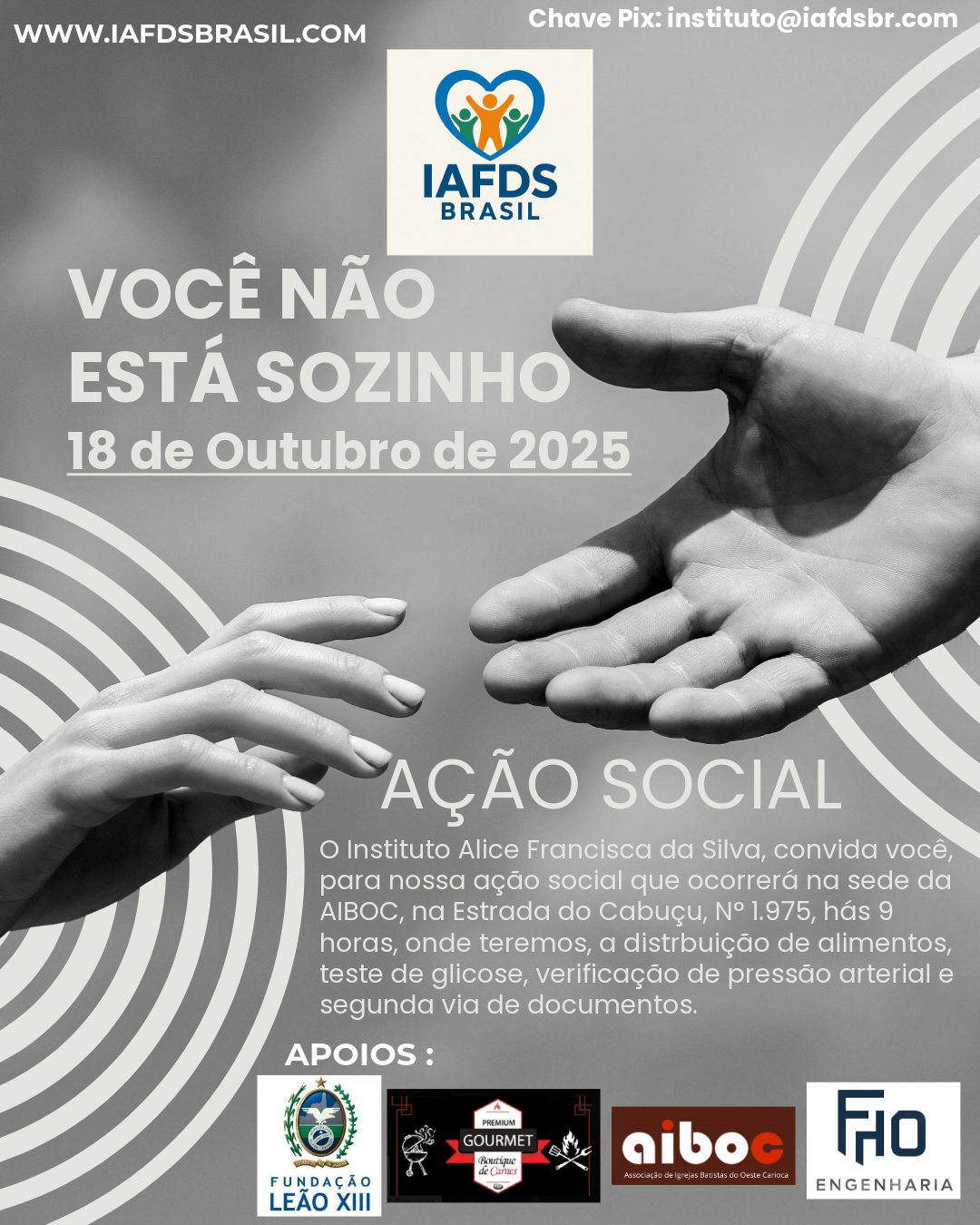 O Instituto Alice Francisca da Silva (IAFDS Brasil) promoveu mais uma grande ação social com o tema "Você Não Está Sozinho", levando não apenas ajuda material, mas também conforto, esperança e acolhimento a muitas famílias.