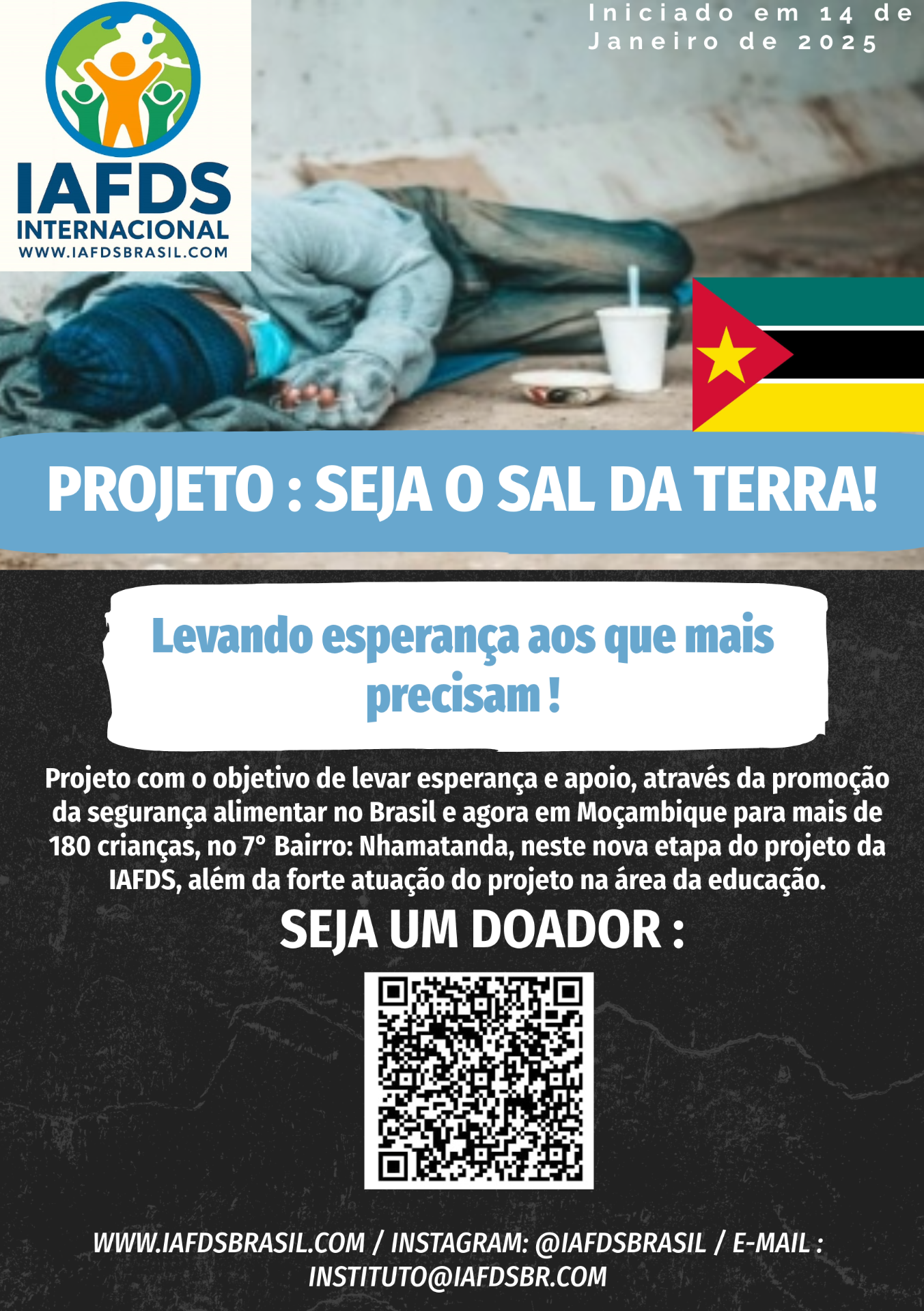 O IAFDS Internacional, através do Projeto Seja o Sal da Terra, nasceu para ser resposta a esse clamor. Nosso compromisso é levar alimento, cuidado e amor às crianças carentes que tanto precisam.